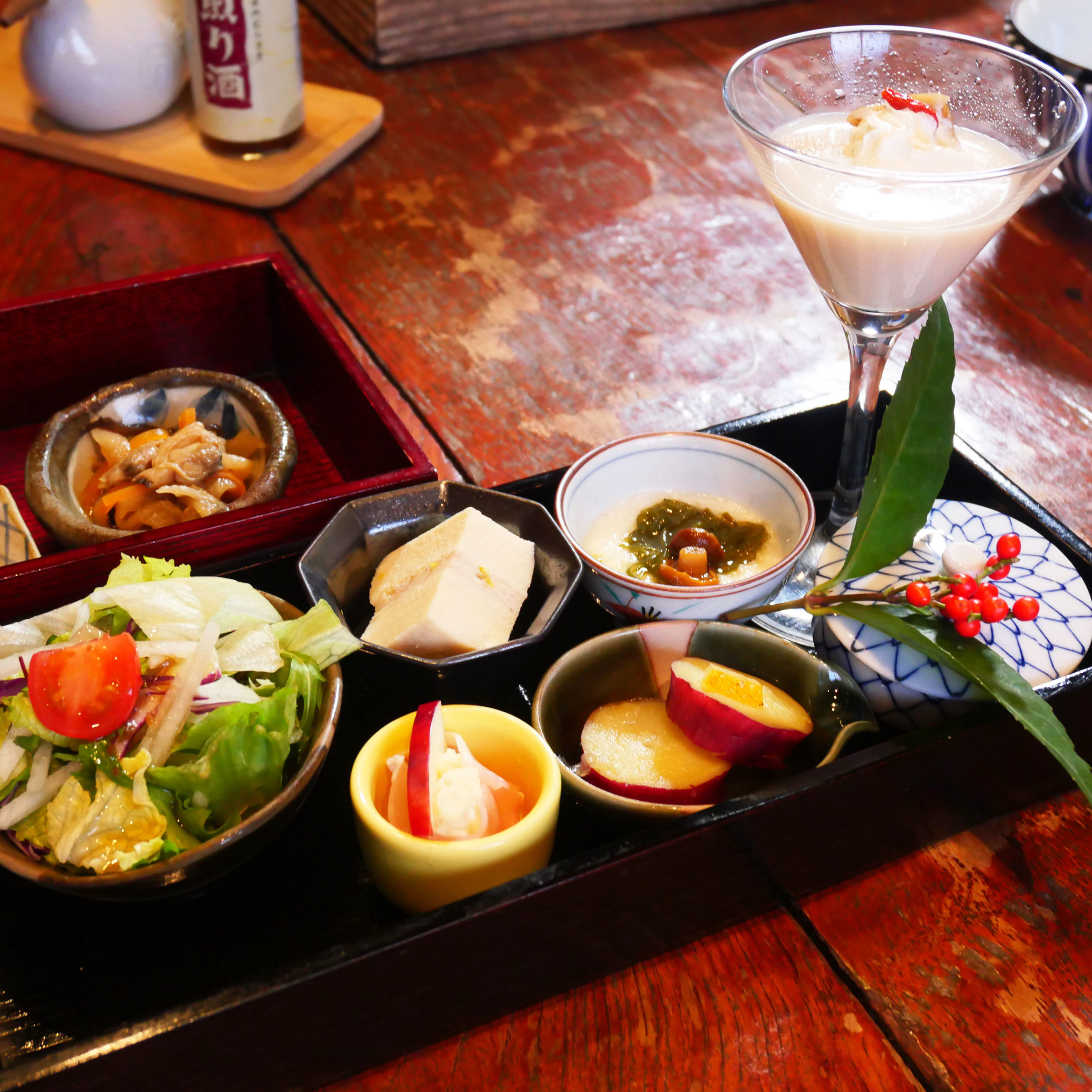 食には大切な方やご家族と囲む食卓でお出しするのは地元熊本の食材を中心にした“創作料理”。 少しでも料理を愉しんでいただくために、見た目にもこだわっております。 ほたるの長屋ではお客様が地元の新鮮な食事を目で楽しみ味わっていただけることを大切にしています。
